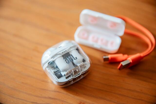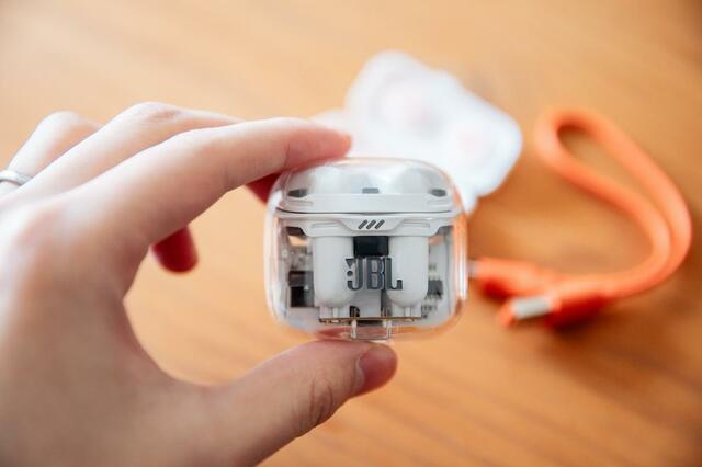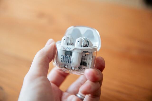 こちらは「JBL Tune Flex Ghost」というワイヤレスイヤホン。このスケルトンデザインがとにかくかわいらしい!