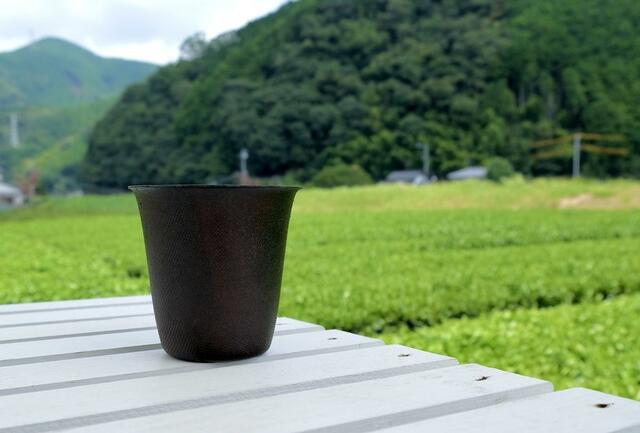 このペーパーカップに、生漆を塗布して仕上げた器が「野漆器 湯呑み」です。