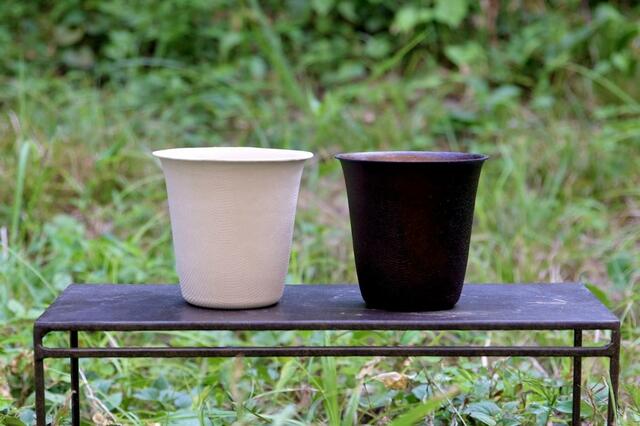 サトウキビの搾りかすと、竹の繊維を原料とした使い捨ての紙容器で、コーヒーやお茶、ビールなどの飲み物用の湯呑み形状。