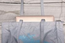 リボン型の収納ケースがセットになっていて、小さく畳むことができます。