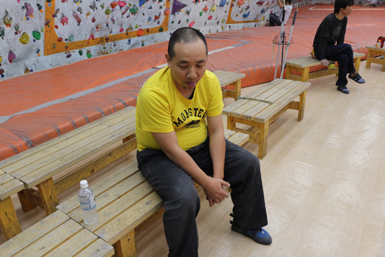 実はこちらのジムには様々な角度の壁が用意されており、それぞれにコースが設定されているのです。今まで僕が挑戦していたのは、角度が80度ほどの、一番楽なコース。