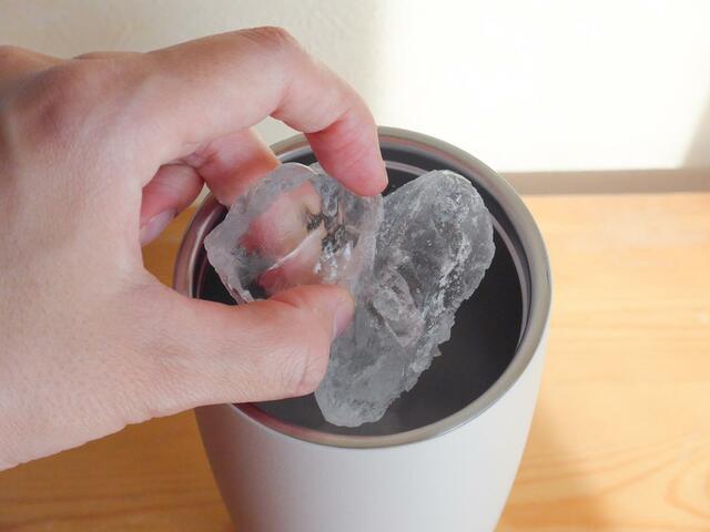 夏にうれしいのが、広口だから大きな氷もスッと入ること。