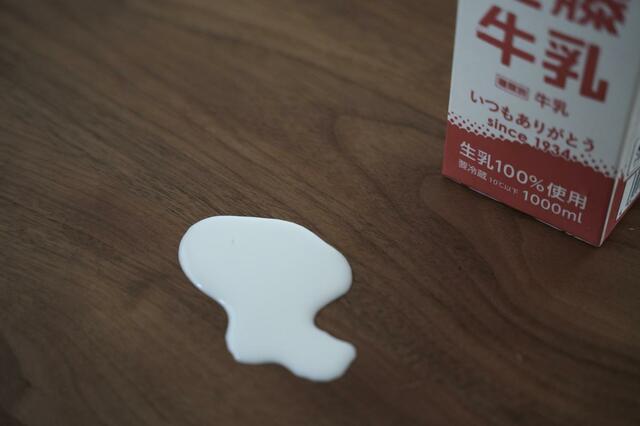 うっかりテーブルに牛乳をこぼしてしまった……。