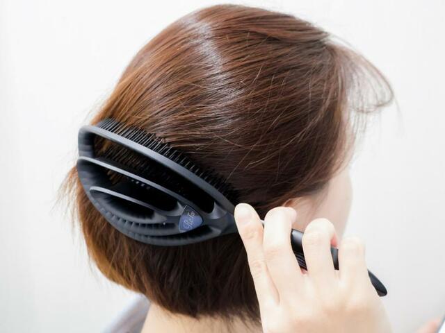 頭皮にフィットする柔軟なピンも相まって、ブラシで髪をかき分けたところにしっかり風が届きます。