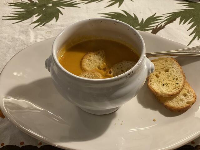 アルゼンチン産のエビ(対面エビと書いてあったので調べたら、これはエビの種類じゃなくて、対面販売しているエビという意味だそう。多分これはバナベイエビかな?)エビの甲殻部分を使って「Bisqueビスク」を作りました。出来上がりが心配だったけれど、OKな味わい。