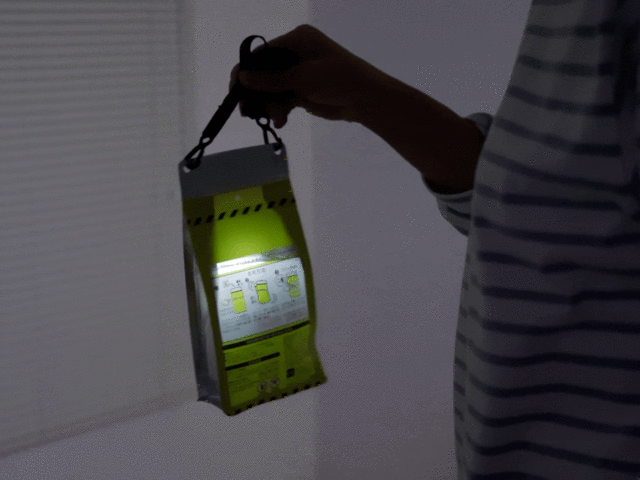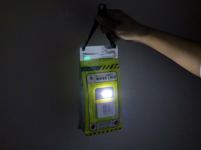 パウチになっている本体に水と塩を入れると、ライトになってくれるというアイテムです。