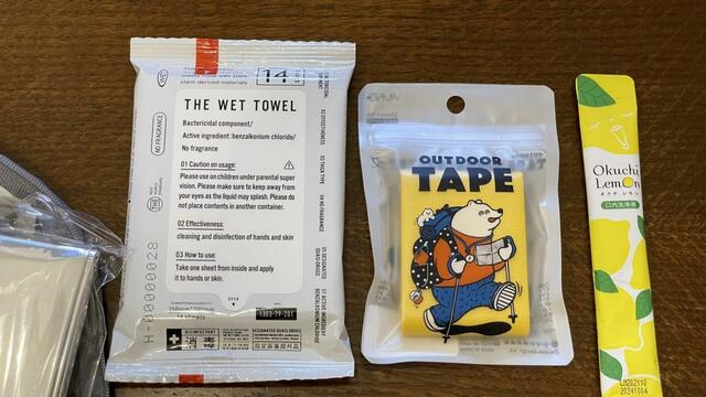 左側のウエットティッシュは、中川政七商店で販売されている消毒ができるもの。