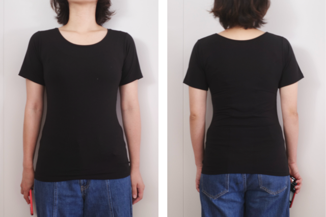 着用した日と、未着用の日、それぞれ別の日の夜に肩のコリ具合をチェックしてもらうと、「Uネックインナー (肩コリ改善)」を1日着て過ごした日は「柔らかくなっている」とのコメントがありました!