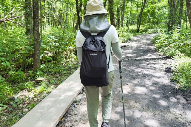 この「ポケッタブル デイパック 20」は、肩の部分が幅広くデザインされており、荷重がしっかり分散されるため、長時間背負っていても肩の食い込みはほとんど感じませんでした。