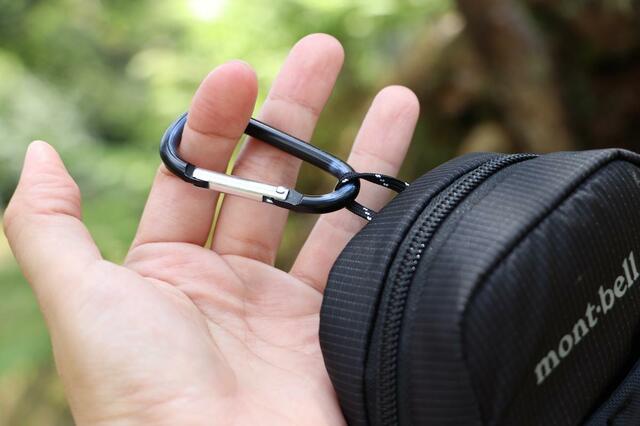 上部にはカラビナを装着できるループが付いていて、このカラビナをバックパックに取り付ければ落ちることはほぼゼロ。