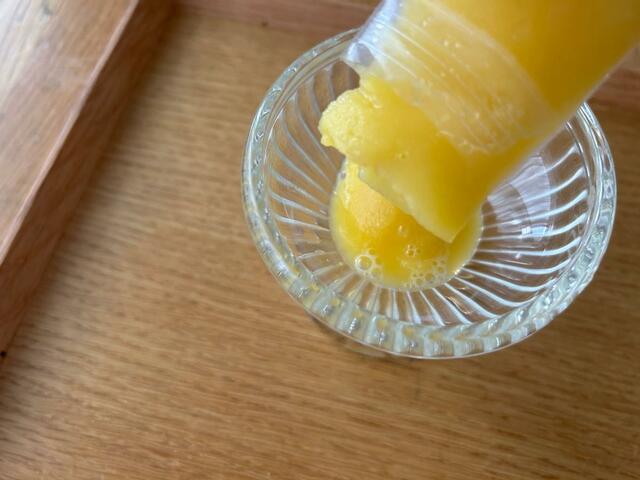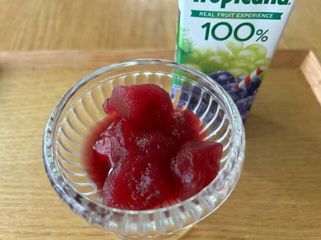 オレンジジュースに比べて、甘さを強く感じるのでその分、シャーベットにしたときも味がしっかりしています。