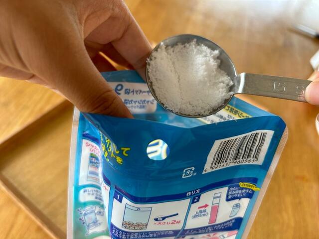 最初はちょっと入れにくいので、コップなどに袋を立てて入れるとスムーズです。