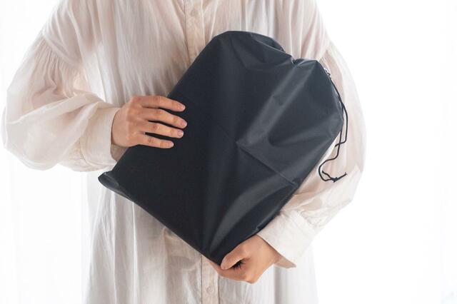 専用の巾着に収納して保管しておくこともできます。ゆったりしたサイズなので、ゴミ袋と凝固剤も一緒に入れておけば安心。