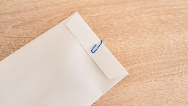 封筒の中身が入った状態で、ゴムバンドを付けてみました。