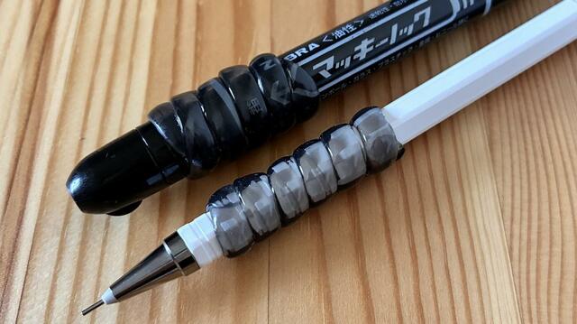 細くて硬いペンが持ちやすくなって、とってもいい感じ。重心が下がって安定感も向上します。