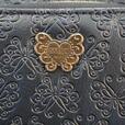 マルチケース(約21×15.5×2cm、4,950円)は、スライダー付きポケットや複数ポケットを備え、細かいアイテムの整理整頓に便利。こちらも型押し素材にエナメルロゴが効いたゴシックデザインです。