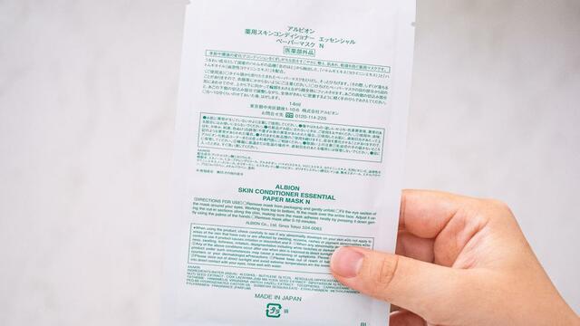 これはもう長年の相棒。アルビオンの「薬用スキンコンディショナー エッセンシャル ペーパーマスク N」。