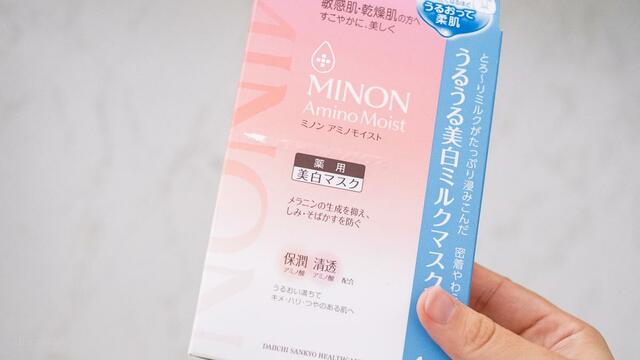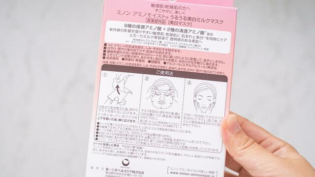 3つ目はドラッグストアで手軽に買える、心強い存在。「ミノンアミノモイスト 薬用うるうる美白ミルクマスク」。