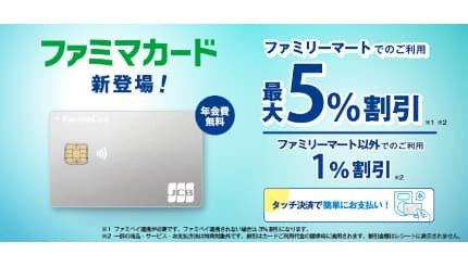 新しいファミマカードは、ファミリーマートでの買い物が常時3%・最大5%割引(一部対象外の商品・サービスあり)となるほか、JCB加盟店での利用でも1%の請求時割引特典が適用される。独自の機能として、同カードの利用代金は、銀行口座の登録がなくても全国のファミリーマート店舗で支払いができる。