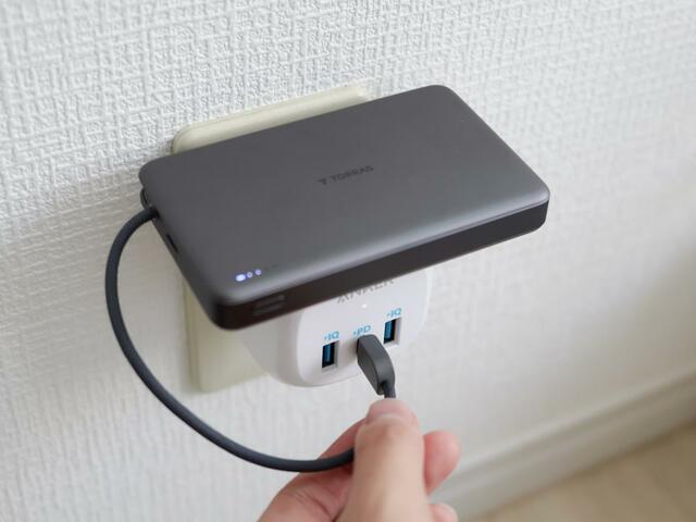 おかげで、モバイルバッテリー自体を支える必要がありません。