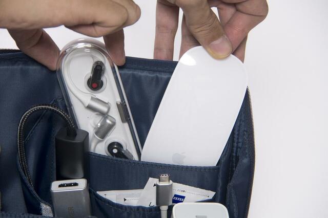 ポケットの多いツールケースということで、ガジェットポーチとしても使えるか試してみたのがこちら。