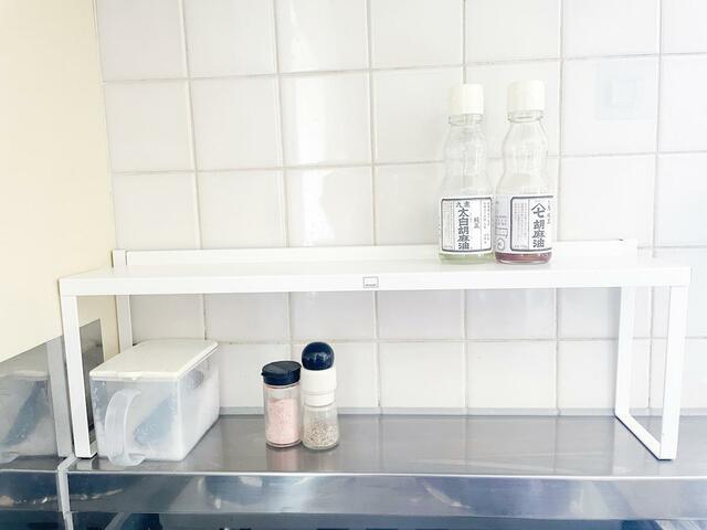 調味料ラックとしてコンロの近くや持て余しているデットスペースで使うのもオススメです。収納が増えるだけで、パパッと効率よく調理できるようになるはず。