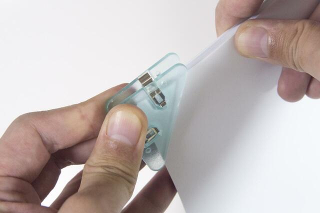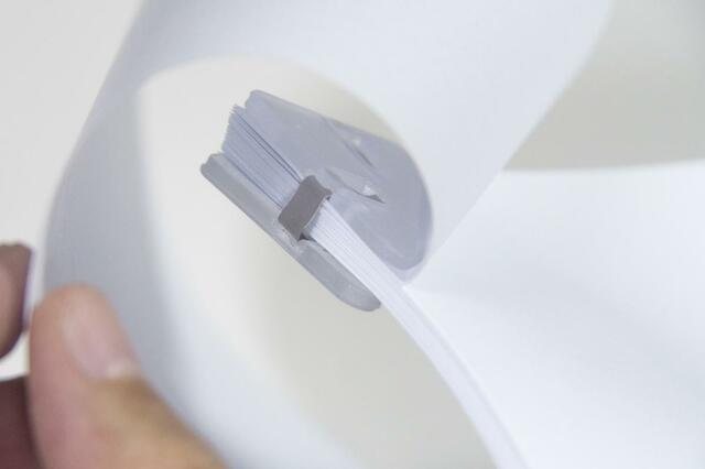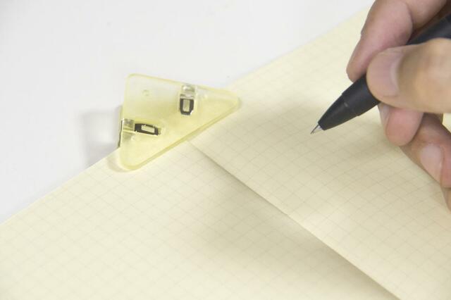 一般的なクリップの要領でカドを挟み、書類をまとめることができます。
