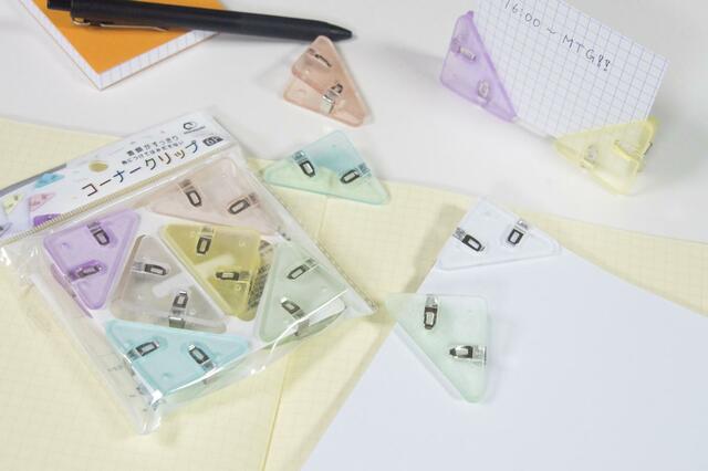 三角形のクリップなので書類をめくりやすいのもコーナークリップのいいところなのですが、それ以外にも便利につかうことができるんです!