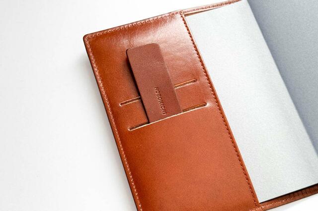 カバーと同じ皮で作った小さなしおりも付属しています。
