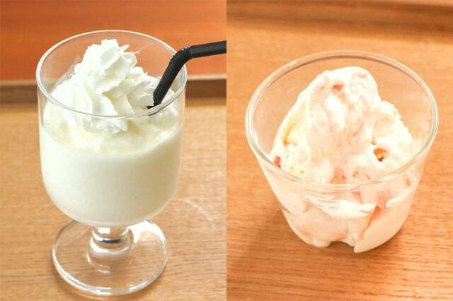 左:フローズンドリンク 右:ストロベリーチーズケーキアイス
