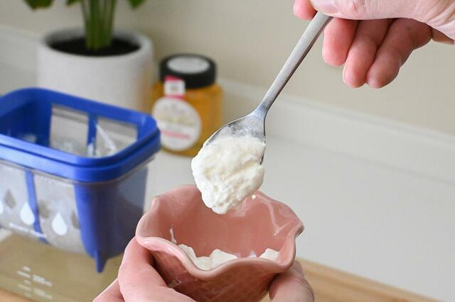 使用するヨーグルトにもよると思いますが、味は酸味が少なめで濃厚。市販のグリークヨーグルトと食べ比べても、遜色ないおいしさです。