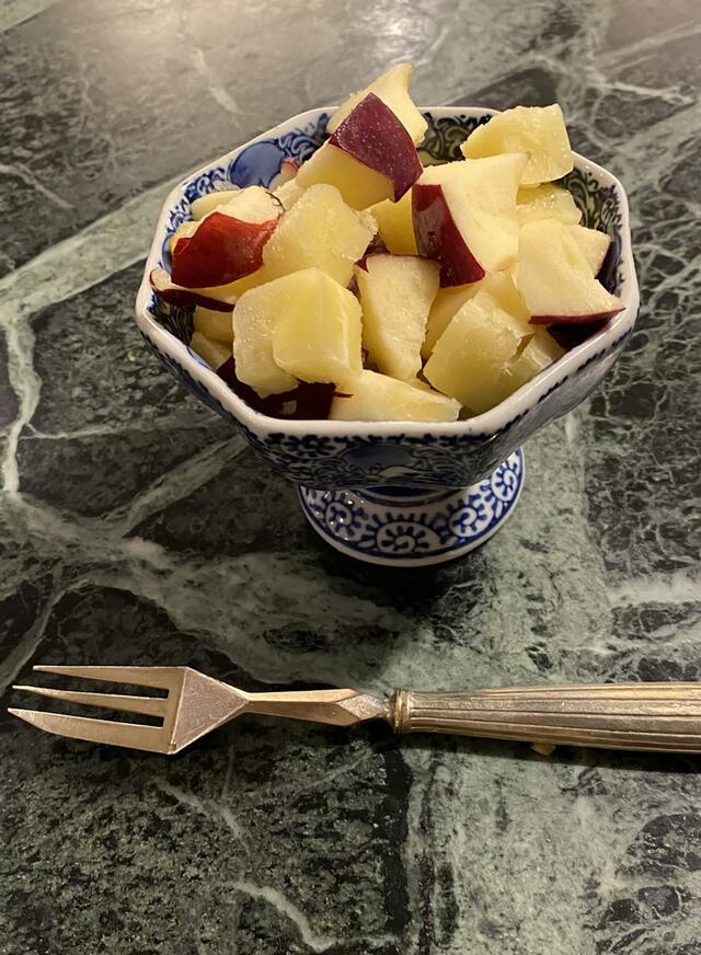 デザートはりんごとパイン君。明日はいい日にしたいと思います。