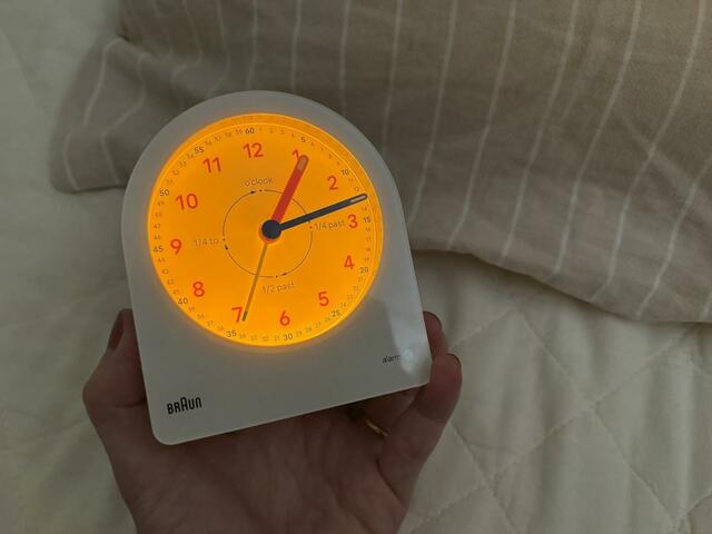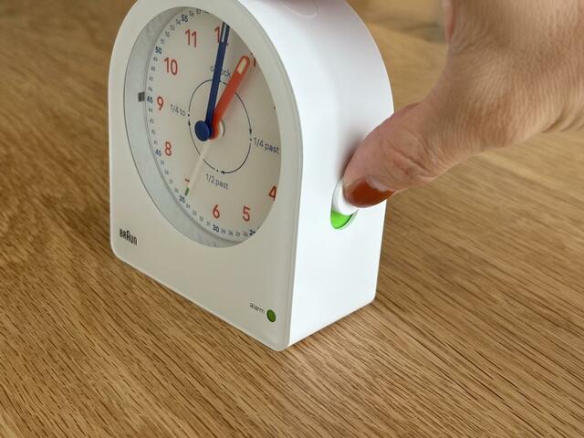 選んだのは、BRAUN(ブラウン)の「タイムティーチャー アラームクロック」。時計をはじめ多くの家電製品を展開しているBRAUN、そういえば筆者が社会人になって最初に購入した目覚まし時計もBRAUNのシンプルなものでした。