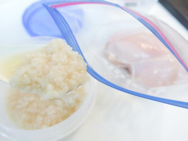 そこで試したのは、鶏胸肉に塩麹をまぶして低温調理するサラダチキン。