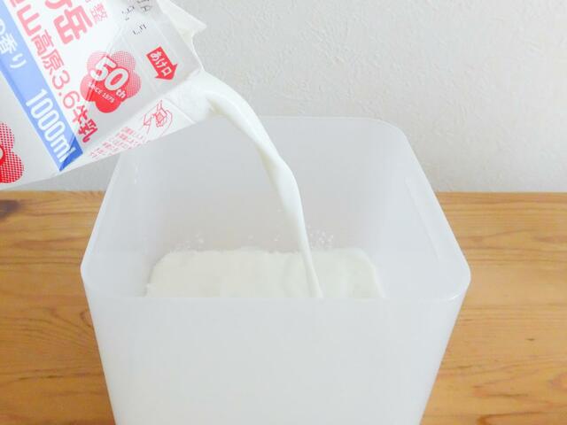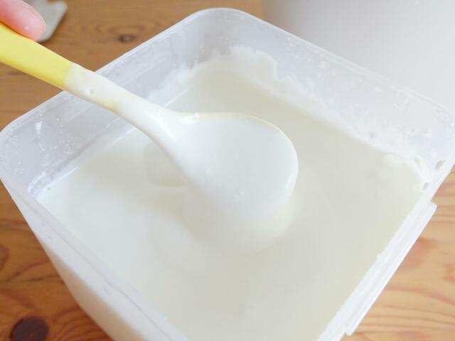 次回のために表面の一部を取り分けて種菌にし、また牛乳に混ぜれば連続で仕込むことができます。