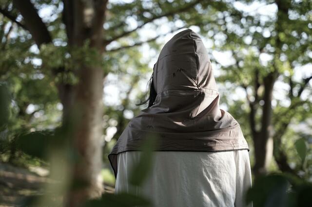 そして直射日光が降り注いでいるときは、フードを被れば、頭から首の裏も含めて日光を遮ってくれるので、とても涼しくなるんです!