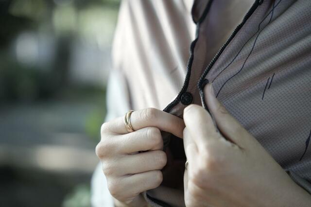 両手がフリーになると言っても、ただ肩に掛けているだけだと風が吹いたときに飛ばされないか心配ですが、このタオルはスナップボタンで留めておけるので、その心配もなし。