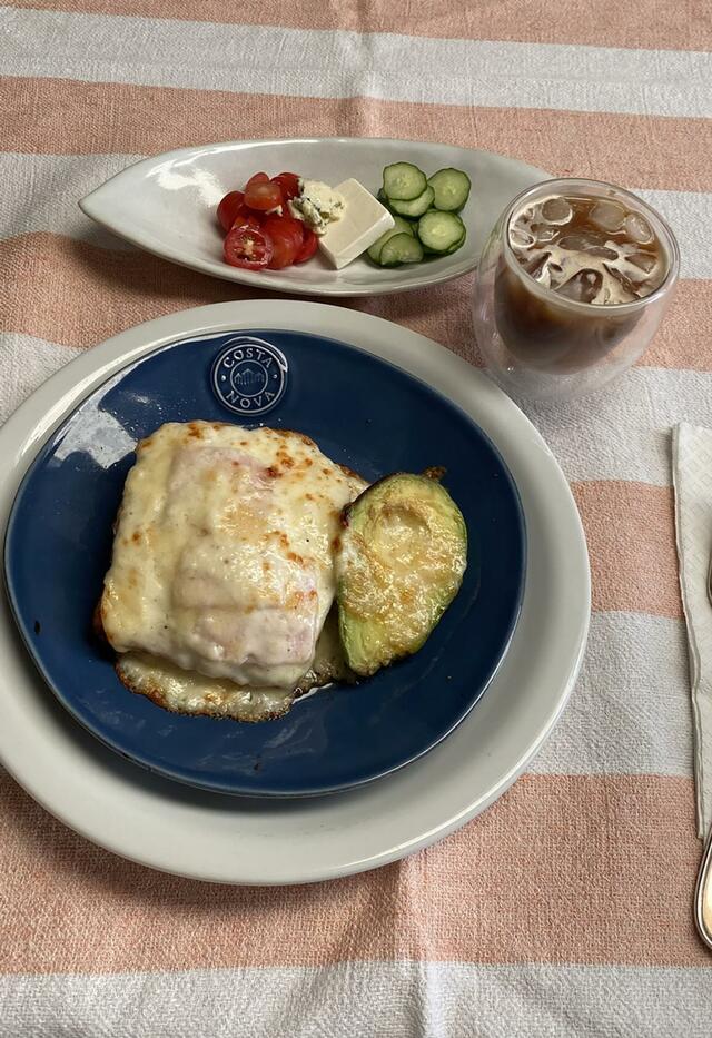 最近、TORUくんがなかなか起きてこないので、朝ごはん抜きになることが多い。今日も昼からクロック・ムッシュを作りました。アボカドも焼いてみた。結構うまい。きゅうりとトマトとクリームチーズ。