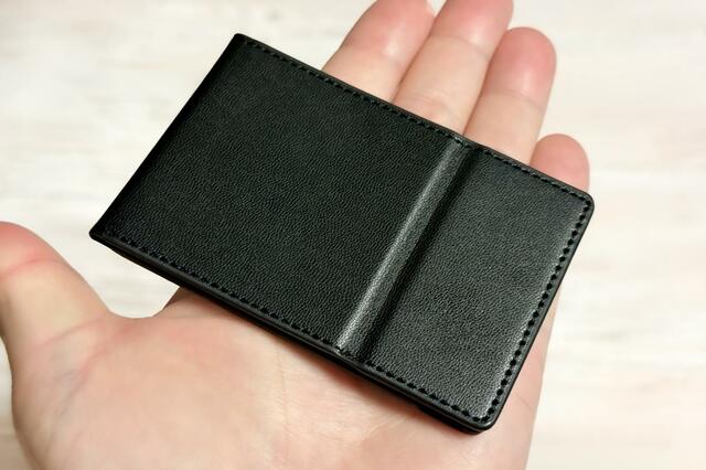 ケースは二つ折りになっており、クレジットカードなど一般的なカードが2枚入るサイズ。