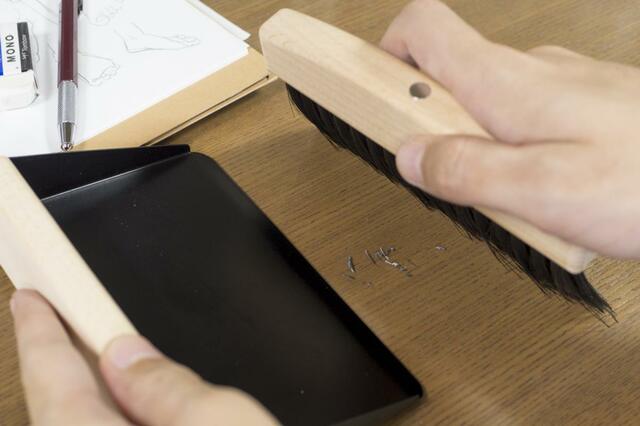 スタイリッシュな佇まいの卓上用ちりとりほうきセットになっています。