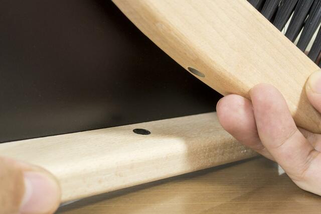 ふちが薄くなっていて使いやすそうなちりとりは、素材にスチール、ブナが使われていて、ほうきはブナ、スチール、PETが使われています。