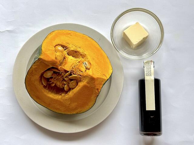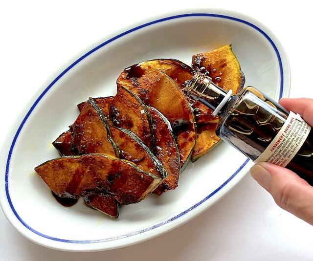 いろんなタイプのバルサミコ酢がありますが、とろりとして熟成度の高い、甘酸っぱいバルサミコがかぼちゃにとてもよく合います。