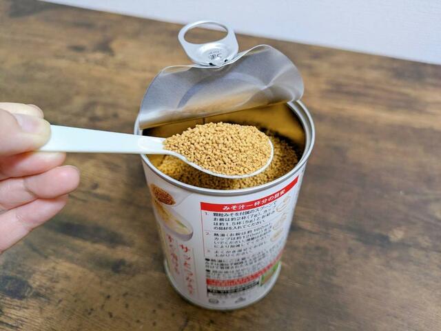 飲んでみると、「生のみそと比べると味が劣るのかな?」という不安は一瞬で吹っ飛びます! いつ、どこで飲んでもホッとするみその味。独自製法で、みそ本来の風味を閉じ込めてあるそう。1缶で約28杯つくれますよ。付属のスプーンは、顆粒みそと一緒に缶の中に入れておけばなくす心配なし!