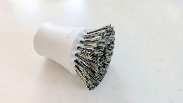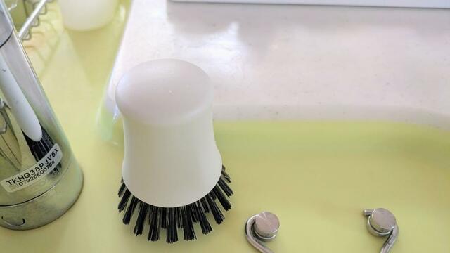 柔らかいスポンジだとここにスポンジが挟まってちぎれてしまうこともありましたが、キッチンブラシならそんなプチストレスもなし。
