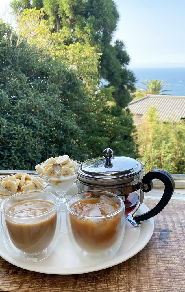 今日は朝ごはんからスタート。バナナヨーグルト、ミルクティ。揺るぎなき定番朝ごはんになっちゃいました。