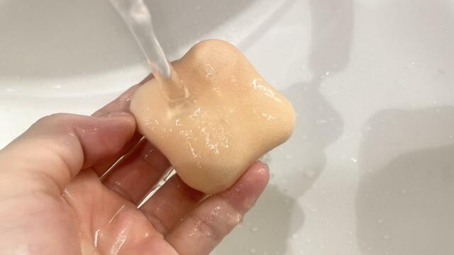 分厚く見えるパフなのに、洗ったらすぐ乾く