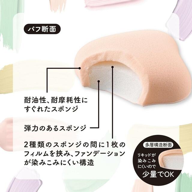 このパフを使えば、何度もつけ足さなくても、最初に出したリキッドが染み込まずに塗り広げることができました。