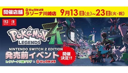 ビックカメラは9月13~23日に、「ポケットモンスター」最新ソフト「Pokemon LEGENDS Z-A」の発売を記念したイベント「Pokemon LEGENDS Z-A発売前イベント in ラゾーナ川崎プラザ&ビックカメラ」を、ラゾーナ川崎プラザ(神奈川県川崎市)にて開催する。