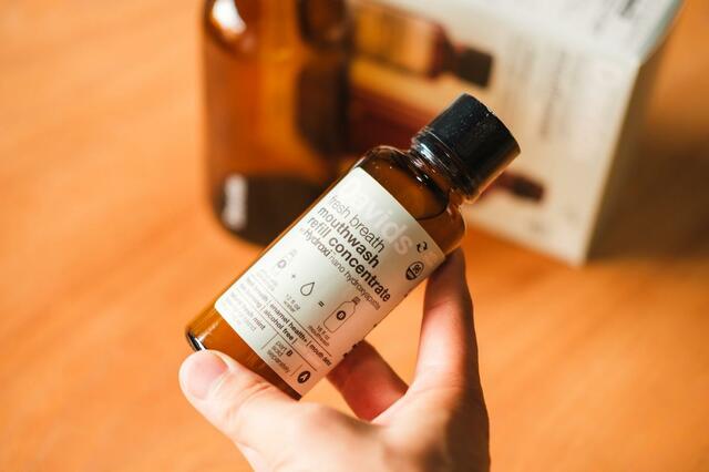 使い方はシンプルで、歯磨きやフロスのあとにキャップ1杯分を口に含み、30秒ほど口の中全体に行き渡らせてから吐き出すだけ。