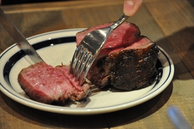 焼きあがった熟成肉からは香ばしいコクと肉の香りが漂う。いただくのは300グラム。圧巻の肉の塊です。